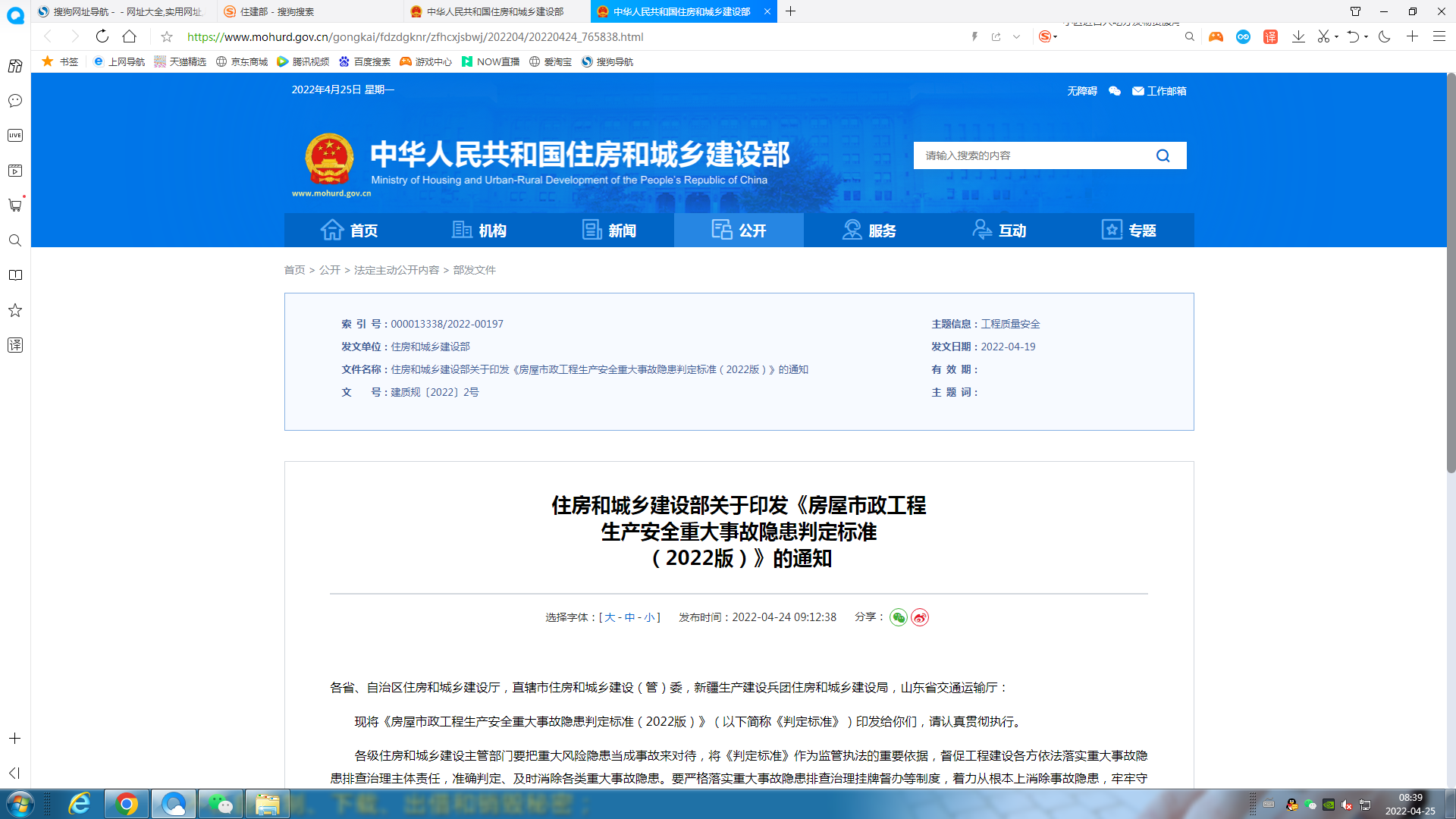 住建部印发《房屋市政工程生产安全重大事故隐患判定标准(2022版)》