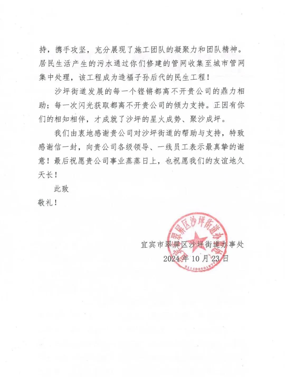 一封感谢信!“港建速度”获赞!