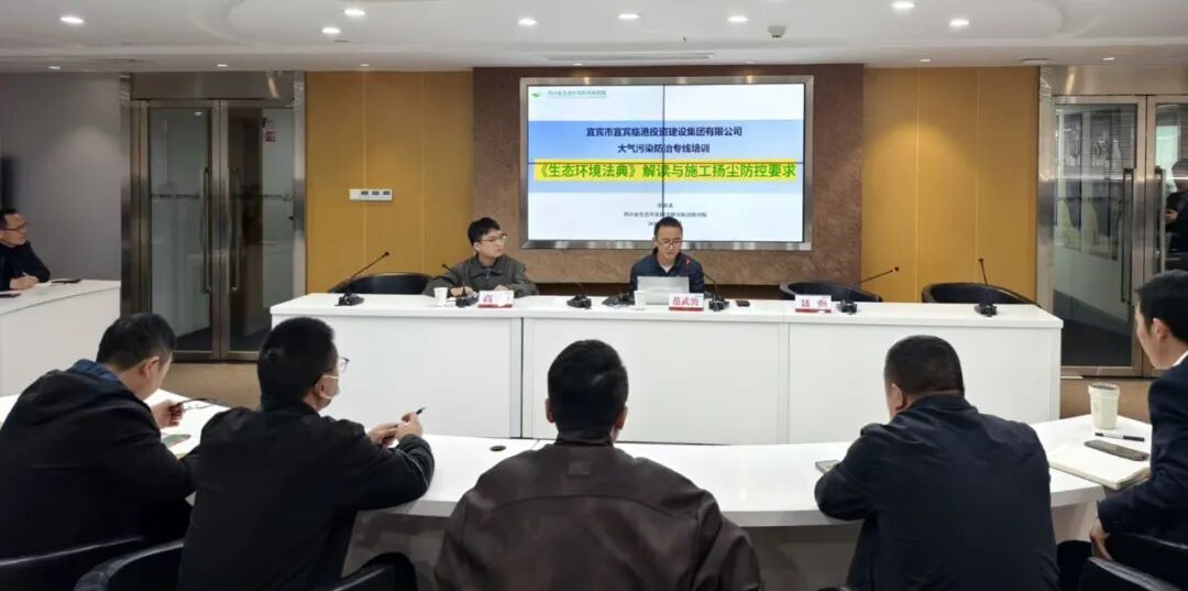 范博士深耕环保领域多年,曾参与起草《四川省施工场地扬尘排放标准》,长期从事大气污染防治及建设项目环保管控工作,并带队在宜宾开展大气污染“一市一策”驻点研究,对本地建设项目环保管控要点把握精准,具备深厚的理论功底与丰富的实践经验。培训中,范博士结合环保新形势、新政策,紧扣建设项目环保痛点,围绕环保法律法规、施工扬尘治理、固废废水处置、风险防范等内容进行了详细讲解。